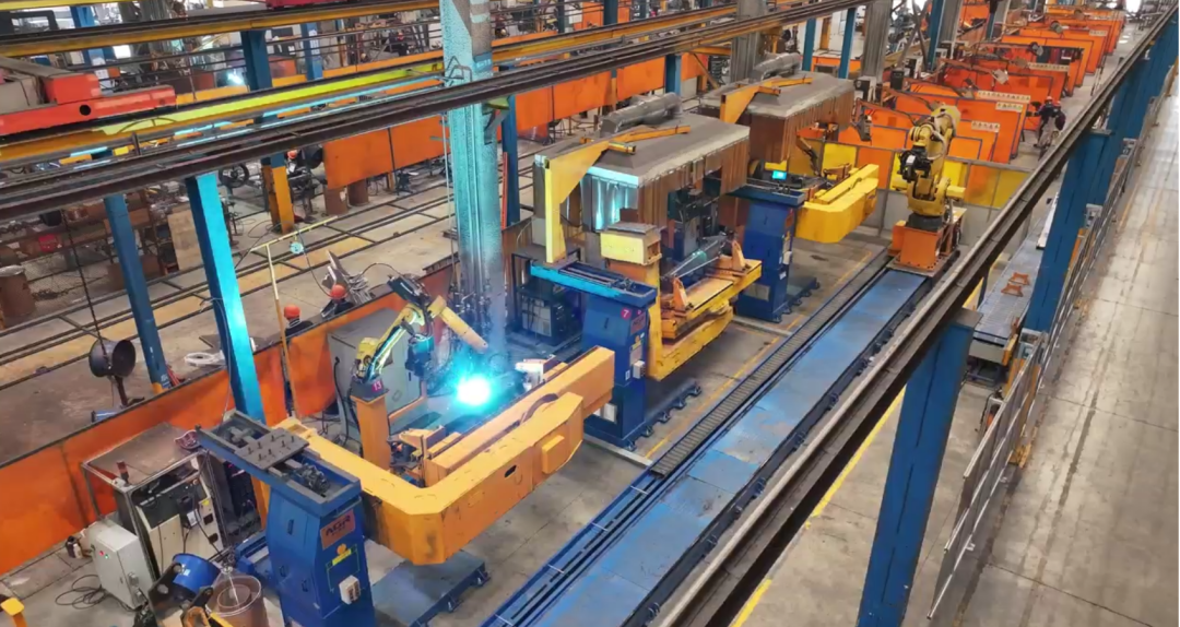 目的:為工程機(jī)械客戶(hù)打造動(dòng)臂與斗桿焊接自動(dòng)產(chǎn)線(xiàn),系統(tǒng)集成機(jī)器人搬運(yùn)、識(shí)別、焊接與 MES 報(bào)工,兼容 22 種產(chǎn)品,實(shí)現(xiàn)穩(wěn)定自動(dòng)化運(yùn)行。
