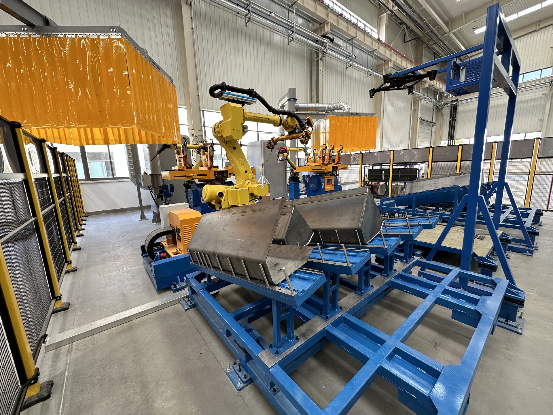 ④在一個(gè)工作站上機(jī)器人負(fù)責(zé)料斗搬運(yùn)、上下料、拼點(diǎn)、焊接,全程無需人工干預(yù),減少作業(yè)人員,降低用工成本