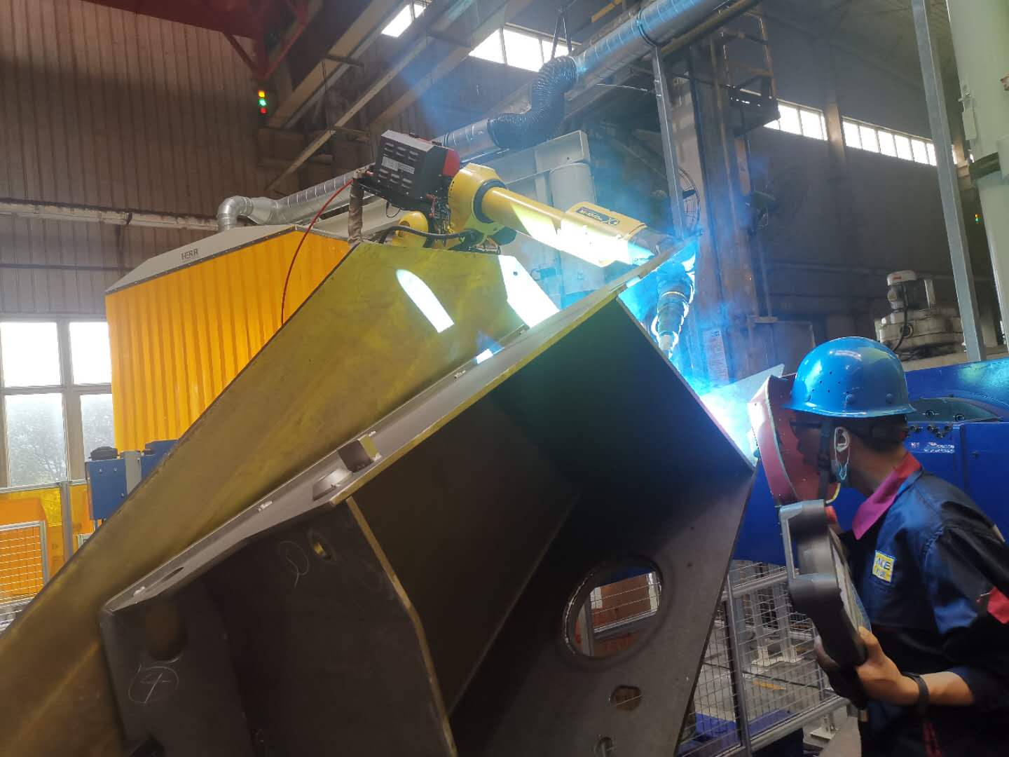 ?跟隨式除塵系統(tǒng):機(jī)器人工作站帶有跟隨式除塵系統(tǒng),采用德國品牌赫爾工業(yè)的除塵系統(tǒng),確保焊接過程中的煙塵得到有效處理。