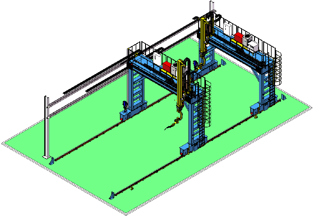 5機(jī)聯(lián)動(dòng)機(jī)器人焊接系統(tǒng);變位機(jī)承載能力達(dá)到1噸,適用于多型號(hào)動(dòng)臂斗桿結(jié)構(gòu)件的焊接;反變形及夾緊定位一體化設(shè)計(jì)伺服夾具,與工件自 動(dòng)化柔性輸送系統(tǒng)配合,可實(shí)現(xiàn)多種型號(hào)工件的自動(dòng)裝夾。